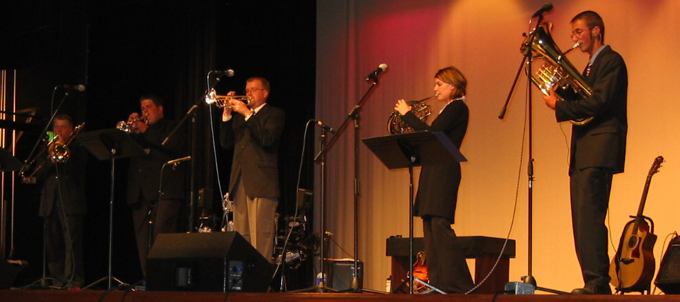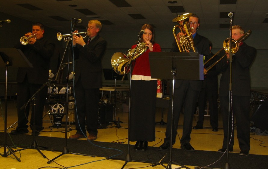 | We have assembled some of our favorite photos for your enjoyment. Please click on any individual photo if you would like to view it at a larger size. If you have a favorite shot of the group that you would like to submit, we would be happy to post it here! | 4-part harmony! Great crowd at Alden Randy belts out a part Now for Carl to give it a try Wells Family pickin' Odosagih Bible Conference 2006 The Whisnants put their hearts into it! Jill Kelly, wife of our favorite Buffalo Bill joined Flash of Brass for a ladies night Flash performing on TV 2006 Flash of Brass group shot 2005 Flash of Brass group shot Flash of Brass Christmas in Batavia, NY - 2004 Flash debuts at Mountain Depot - Gerry, NY on August, 2004. Flash of Brass in rural Chautauqua County, NY On stage July 10 at Elba High School performing a new brass number, Daddy Sang Bass! Judy Martin from The Martins performed at LaborDaze 2004 Flash of Brass opened for Judy Martin on 9/5/04 at Oakfield Labor Daze! |