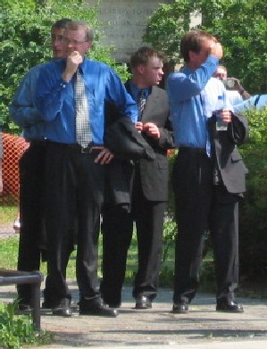 Flash played on the beach at Alden in '06! Singing around the single mic The Wells Family Wells Family and Flash together to close the concert The Whisnants enjoy their meal Practice makes perfect Rob's got his look down pat! And Barb's got her look down pat too! We met a fine melodica player at a recent jam session! Mike helping to mow the lawn before a big concert! Barb and the "tough" guys. Sounds good Lee said the trailer was just around the corner, right? Enjoying dinner at West Alden Diner with The Needhams. Dave's got some great stories! Flash performing at Ellington Town Park. 2004 Flash of Brass group shot 2003 Flash of Brass group shot |